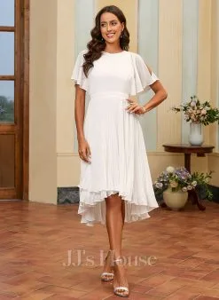 JJsHouse Robe Trapèze Scoop Asymétrique Mousseline Dentelle Robe De Mariée Avec Paillettes