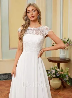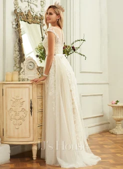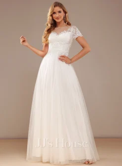 JJsHouse Robe Trapèze Scoop Balayage/pinceau Train Mousseline Dentelle Robe De Mariée