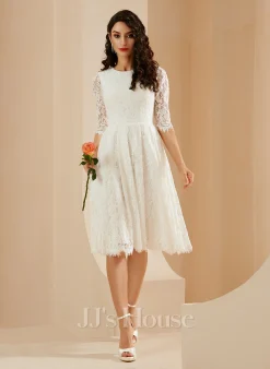 JJsHouse Robe Trapèze Scoop Longueur Genou Mousseline Dentelle Robe De Mariée Avec Paillettes