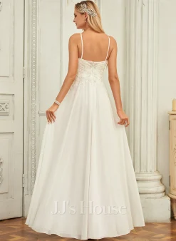 JJsHouse Robe Trapèze Scoop Balayage/pinceau Train Mousseline Robe De Mariée Avec Brodé