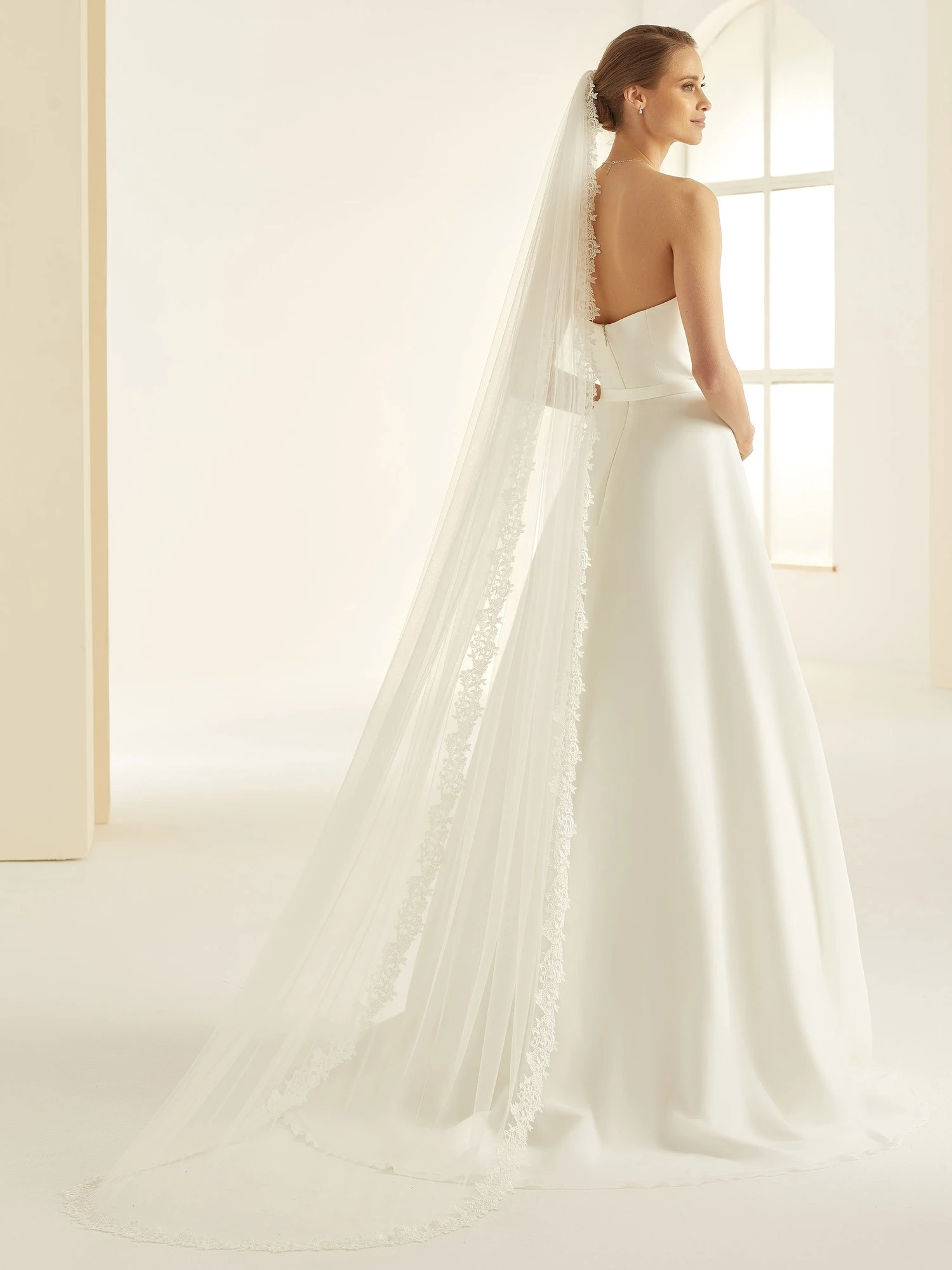 Voile de mariée long en tulle souple.
