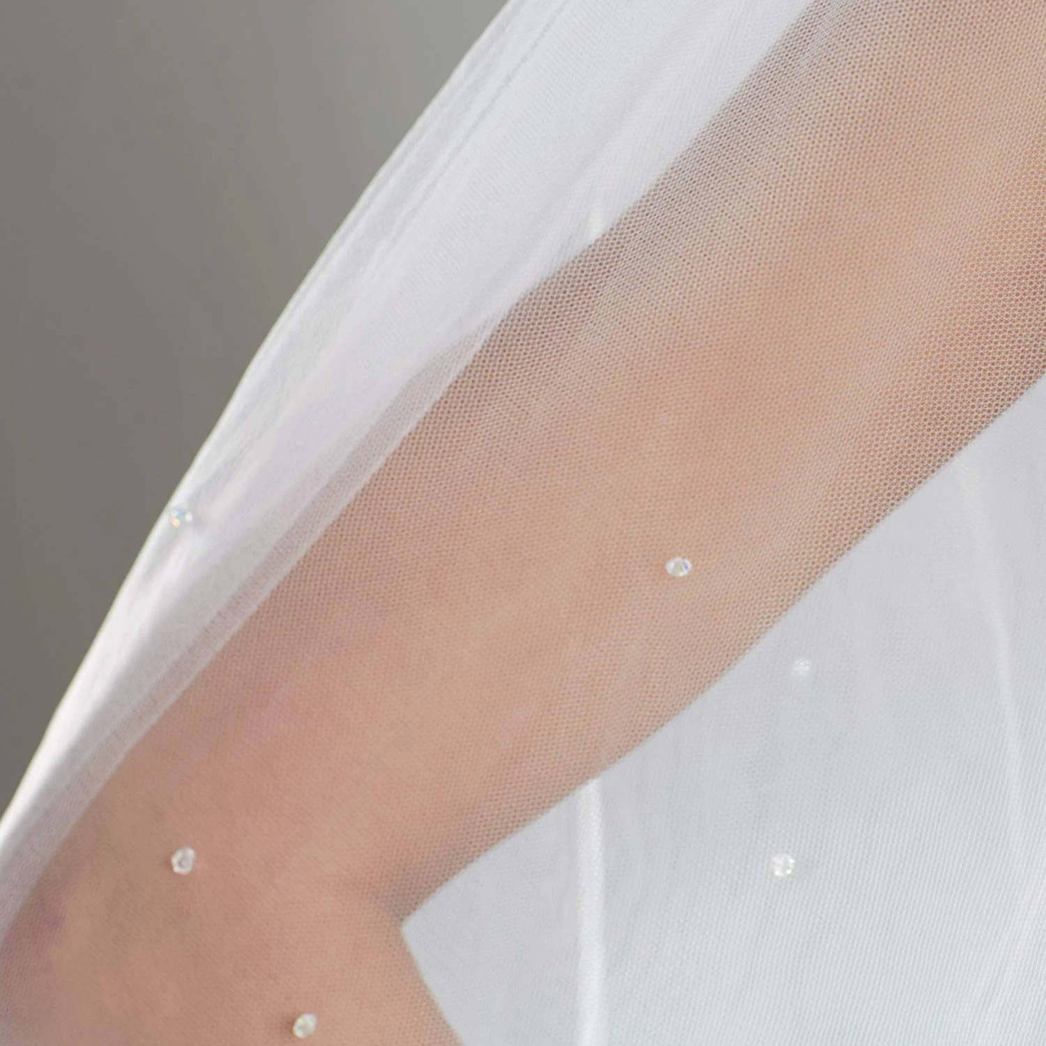 Bordure festonnée décorée à la main avec 221 perles de cristal Swarovski.