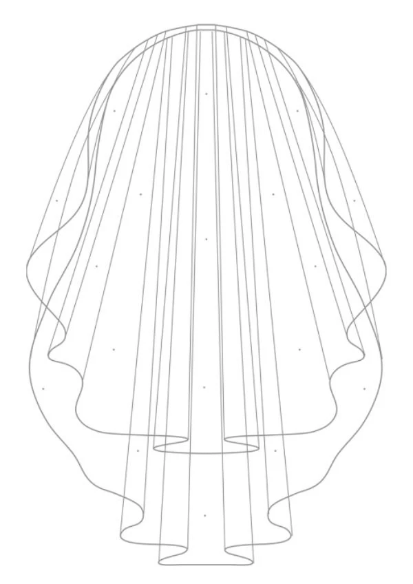 Voile de mariée mi-long en tulle souple ivoire avec bordure festonnée.